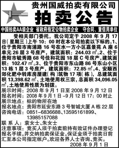 友情鏈接: 貴州省拍賣行業(yè)協(xié)會(huì) | 中國(guó)拍賣行業(yè)協(xié)會(huì) | 貴州省高級(jí)人民法院 | 貴州省商務(wù)廳 |